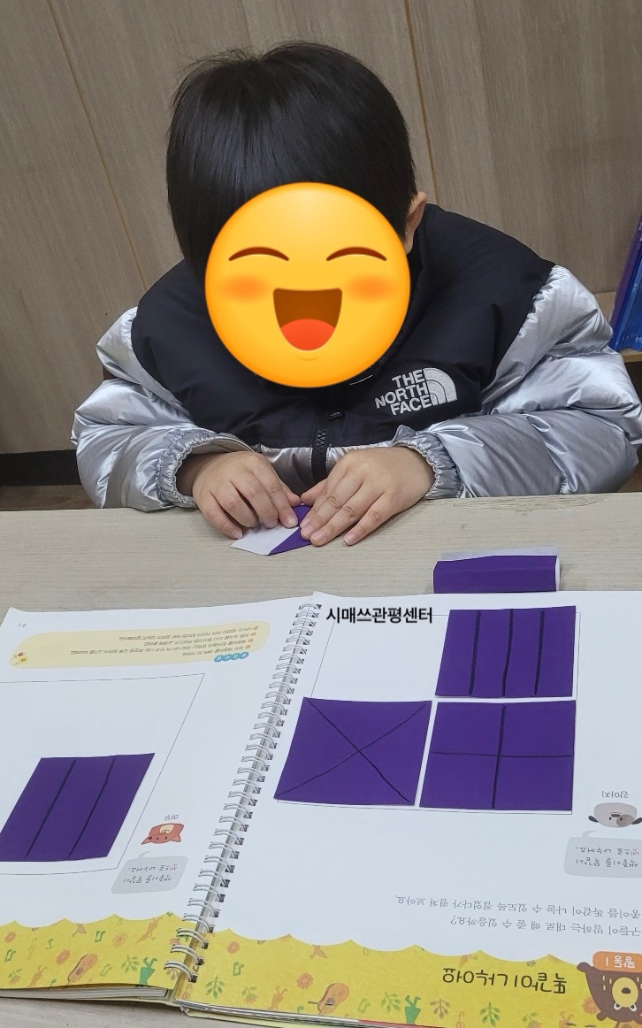 시매쓰 유아수학 프로그램 ‘위니매쓰’ 활동 이야기 아이들이 즐겁게 배우는 시매쓰 관평센터 유아수학 프로그램 ‘위니매쓰’ 활동 중에서 ‘똑같이 나누어요’와 ‘주문에 맞게 색칠해요’ 활동을 소개해 드릴게요. 위니매쓰 2단계 3권) 똑같이 나누어요. 여러 가지 모양을 똑같은 크기로 나누는 방법을 알아보는 시간이었어요. 네모 모양을 가로, 세로로 나누기도 하고 대각선으로 나누어 보기도 하며 같은 크기의 조각이 만들어지는지 관찰해 보았답니다. “선생님! 이렇게 나누어도 똑같아요!” 아이들은 직접 선을 그어 보며 다양한 방법으로 같은 크기의 조각을 만들 수 있다는 것을 발견했어요. 원, 사다리꼴, 오각형 등 여러 도형에서....... <img src="https://blogthumb.pstatic.net/MjAyNjAzMDlfNzkg/MDAxNzczMDQzOTk0NDMx.MehUNtpKWnMvh9rSB3J-E0bRItbXdniy7W5iVyShEwog.JoZI2ReFM_2LjFcyk_mNquKH_wTivNJZC5xMkM3BR9Ag.JPEG/output%A3%DF3626603469.jpg?type=s3" />