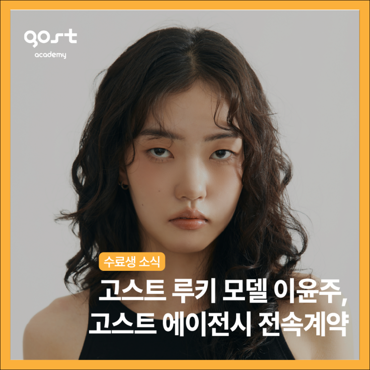 아카데미 수료생에서 정식 에이전시 모델로, 이윤주 모델의 새로운 출발을 응원합니다! 안녕하세요, 고스트 아카데미입니다. 오늘은 고스트 아카데미가 배출한 또 하나의 반가운 소식을 전해드리려고 합니다. 바로 5기 스탠다드 방학반을 수료한 이윤주 모델이 고스트 에이전시와 정식으로 전속 계약을 맺고 프로 모델로서 본격적인 행보를 시작하게 되었습니다. 꿈을 향한 체계적인 성장, 아카데미에서 에이전시까지! 이윤주 모델은 고스트 아카데미의 수료 혜택인 오디션을 통해 처음 '루키(ROOKIE)'로 선발되었습니다. 고스트 에이전시의 루키 모델은 수료생들이 소속 모델들과 함께 체계적인 매니지먼트를 받으며 실전 경험을 쌓을....... <img src="https://blogthumb.pstatic.net/MjAyNjAyMjRfMTYw/MDAxNzcxOTEwMzE3NjU5.PJQqWB3RfUeIOM3nKRpHkuxc9NGz64yHyA7CwbYnMDkg.-RnjihpvfJWSU2-92PuPk6FDUXniwxCCf6lYaZfS0GQg.PNG/%C0%CC%C0%B1%C1%D6_%B0%ED%BD%BA%C6%AE%BF%A1%C0%CC%C0%FC%BD%C3_%C0%FC%BC%D3%B0%E8%BE%E0_%BD%E6%B3%D7%C0%CF.png?type=s3" />