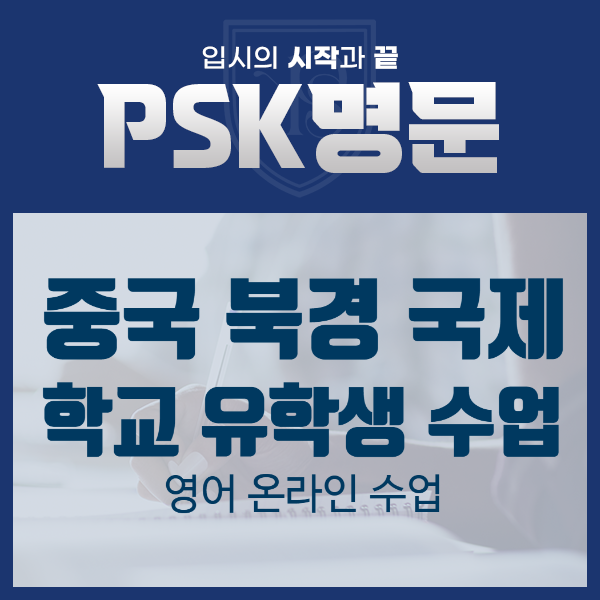 안녕하세요 PSK명문입니다. 오늘은 중국 유학생 대상 온라인 수업 안내입니다. 중국 북경 한국 국제학교 유학생을 포함 소수 정예 토플 온라인 클래스 모집입니다. 북경한국 국제학교에 재학 중인 학생이라면 이미 알고 있을 것입니다. - 학교 수업에서 토플 교재 사용 - 리딩, 리스닝, 라이팅 모두 토플 방식 평가 - 내신과 동시에 공인 시험 대비 구조 하지만 현실은 다릅니다. 이런 고민, 있지 않나요? 1. 준비하고 유학 온 학생 - 한국에서 토플을 어느 정도 준비했지만 - 학교 수업은 생각보다 빠르고 - 라이팅, 스피킹이 생각처럼 정리가 안 되는 경우 2. 갑작스럽게 유학을 온 학생 - 갑자기 영어 환경에 놓였고 - 학교는 토플 교재로 수....... <img src="https://blogthumb.pstatic.net/MjAyNjAyMThfMjI4/MDAxNzcxMzk0OTMwNTE0.cX9O9nyhtDxMYeNPGu6Bt8F64d2aBcjcNspmwGrsdmwg.lMgR2UK8W-6tjGIJw8Zh6w5sziFHLcItxidlstmjQlIg.PNG/PSK%B8%ED%B9%AE_%BD%E6%B3%D7%C0%CF.png?type=s3" />