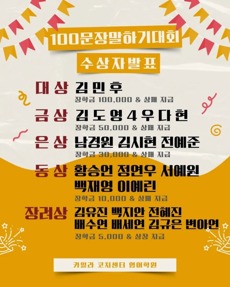 두둥~~ 너무나 열심히 해준 너희들 고맙고 사랑한다♡ #기본영문법 #지속하는 #말하기대회 #열심은더좋아 #특강 #수성구영어학원 # <img src="https://blogthumb.pstatic.net/MjAyNjAxMjdfODkg/MDAxNzY5NDg5MjA3NjA2.M-yMYos7oECyav1P3A9TRrMxCuCwa15YSu1i1fRpuXEg.4QfVFLpc6EWJEBMufMlYkM9FSPpOu8SZFFBxQWYYD-8g.JPEG/900%A3%DF1769488012243.jpg?type=s3" />
