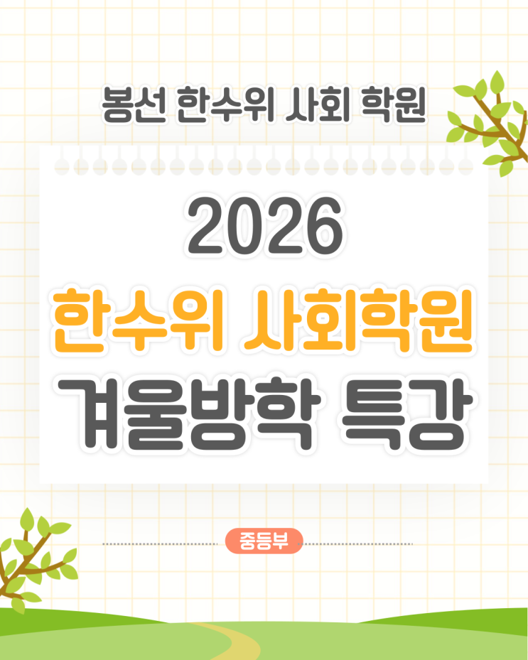 봉선동 한수위 사회학원 2026 겨울방학 특강안내