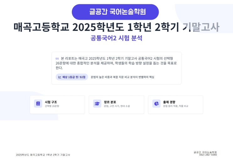 [글공간 국어논술] 울산 매곡 국어학원 글공간 - 2025학년도 매곡고등학교교 1학년 2학기 기말고사 시험 분석