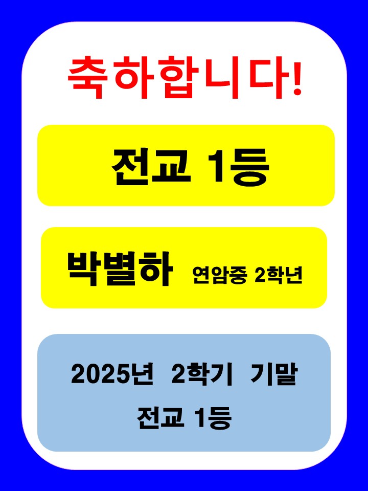 화봉고영어학원, 무룡고영어학원, 고헌중영어학원, 화봉중영어학원, 연암중영어학원, 울산북구송정영어학원 [레인하이영어학원] 2025년 2학기 기말고사 또 또 전교 1등! 1등!!!