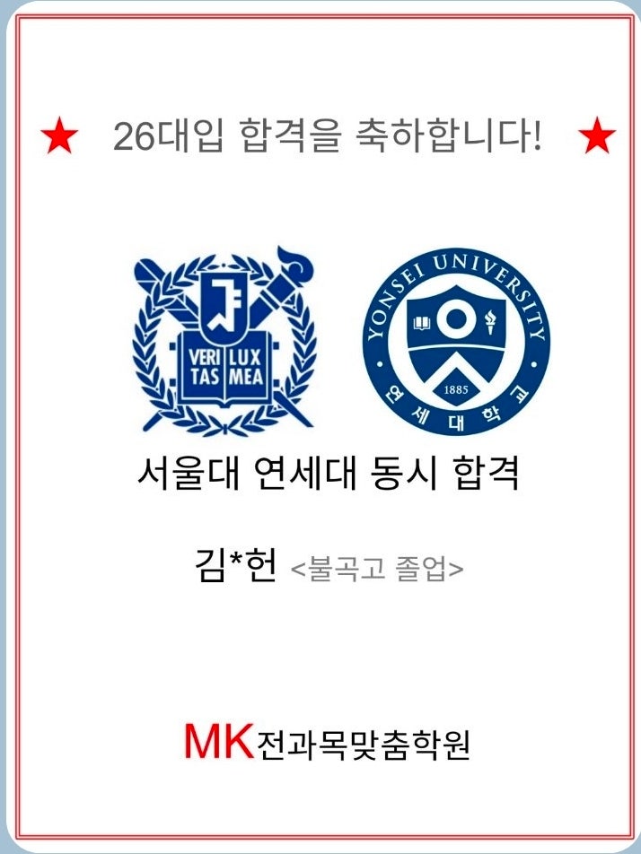 8년의 동행, 태헌이의 서울대·연세대 동시 합격 비결 한 아이의 재능이 꽃을 피우기까지는 얼마나 많은 인내와 전략이 필요할까요? 초등학생 때 처음 만나 8년간 전 과목을 총괄하며 지도했던 태헌이가 마침내 서울대학교와 연세대학교 동시 합격이라는 쾌거를 이뤘습니다. 단순한 합격 수기를 넘어, 그 치열했던 8년의 기록을 공유합니다. 1. 초등부터 발견된 천재성, 그리고 앞서나간 중등 시절 태헌이는 초등학생 때부터 수학과 과학 분야에서 압도적인 천재성을 보였습니다. 그 재능을 놓치지 않도록 세심하게 커리큘럼을 설계했고, 그 결과 중학교 시절에 이미 고등 전 과정을 완성할 수 있었습니다. 하지만 탄탄한 로드맵 위에서도 위기의....... <img src="https://blogthumb.pstatic.net/MjAyNjAyMjNfMjI5/MDAxNzcxODU1MjYwMjk0.4zFfwierrF6xPPebbNk0cReIIQ02IlF4yh-g4s2YZG0g.8OqusDF0JXh3dtRgzqETg2cqdNwL_64DB9f-kU6FV6gg.JPEG/Screenshot%A3%DF20260223%A3%DF230027%A3%DFKakaoTalk.jpg?type=s3" />