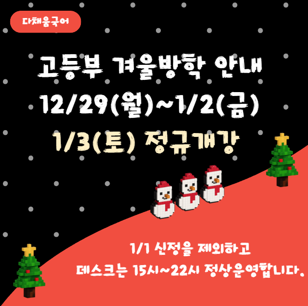 [다채움국어] 고등부 겨울방학 안내(12/29월~1/2금)