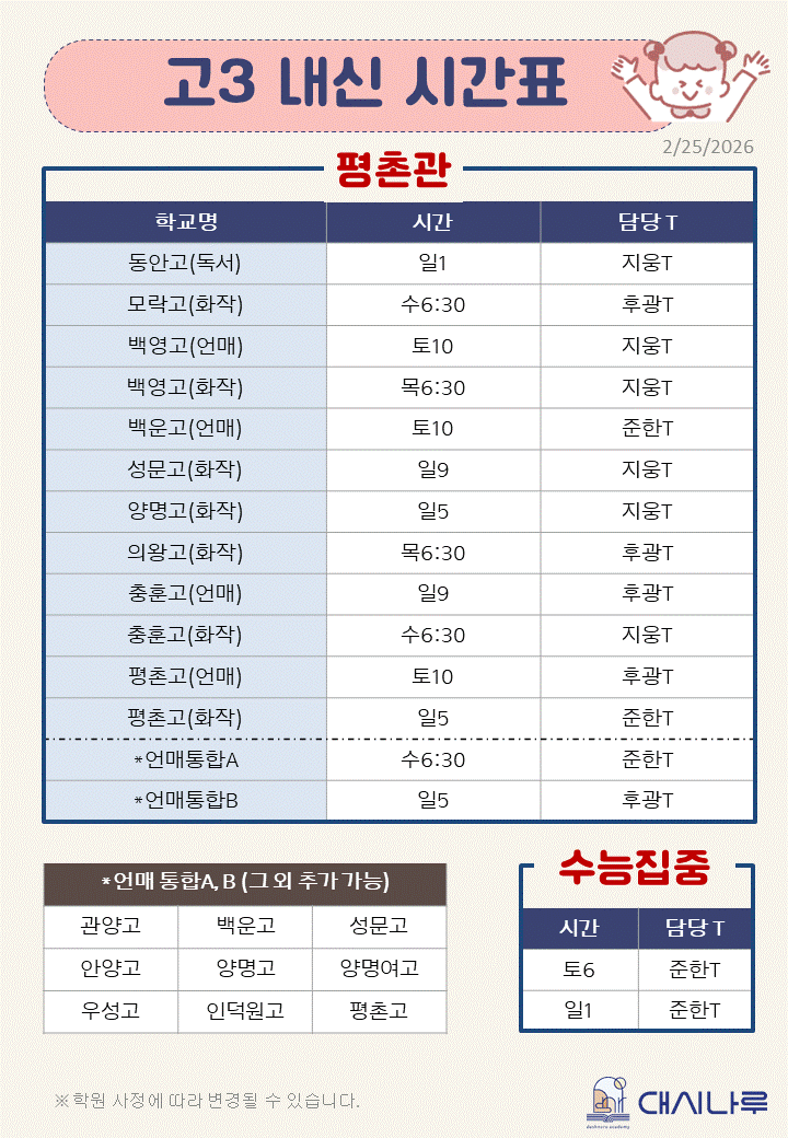 2026 고3 내신 시간표