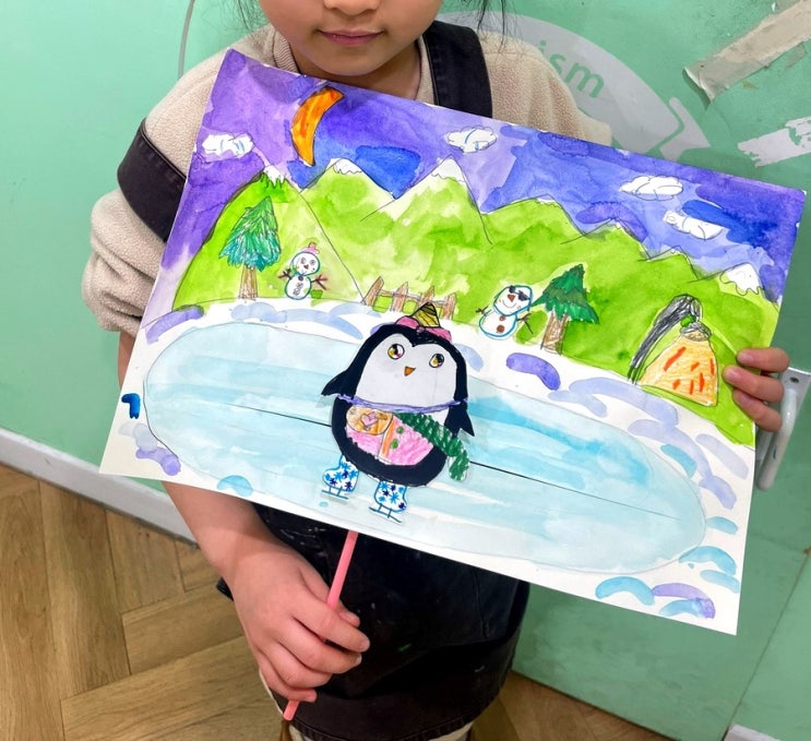 안녕하세요! ♥<아트프리즘 미술교육센터>입니다!♥ 펭귄이 스케이트를 타요 오늘은 아트프리즘 친구들이 좋아하는 겨울 동물 ! 펭귄이 얼음 호수에서 스케이트를 타는 작품을 만들어보았어요~ 그럼 키즈 어드밴스 친구들의 작품을 보러 가보실게요! 펭귄 사진을 보며 그려보아요! 펭귄의 특징인 통통한 몸과 동그란 눈을 관찰해서 그려주었어요 스케이트도 신겨주었답니다! 그리고 펭귄이 스케이트를 탈 수 있을 만큼 꽁꽁 얼어붙은 얼음 호수를 만들어요~ 얼음 호수에서 스케이트 타는 펭귄 완성! 오늘 만든 작품은 아이들이 가지고 놀 수 있도록 움직이는 펭귄으로 만들어보았어요! 펭귄은 남극에서 왔기 때문에 스케이트를 무척 잘 탄....... <img src="https://blogthumb.pstatic.net/MjAyNjAyMjVfMjgx/MDAxNzcxOTg1NTE2NzM0.iWLRzTbOcgvYqMIQqSrPjicNEvY3CPmtRmhnmTqzLZUg.LvtLp-fuzICJtEKEFowZ6mt8DChn-Yzzmq-Ai9g-L-4g.JPEG/output%A3%DF3261883876.jpg?type=s3" />