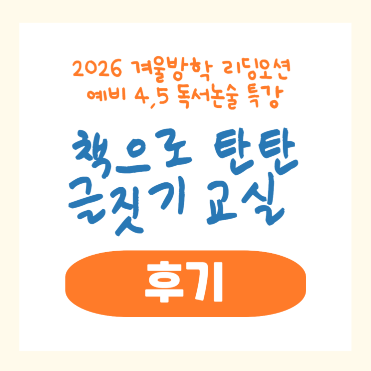 안녕하세요! 광장동 독서논술의 중심 리딩오션입니다. 이번 겨울 방학에도 광장동 독서 논술 국어 학원 리딩오션에서 새 학기 맞이 글쓰기 특강이 열렸습니다^^ 고학년 글쓰기가 요구하는 문해력, 문장력, 구성력을 한 단계 훌쩍 올리는 것을 목표로 매주 화요일 10시, 5주간 생각하며 책을 읽고 주제에 맞춰 글을 쓰는 시간을 가졌습니다. 열정 어린 눈빛들로 가득했던 탄탄 글짓기 교실에서의 이야기를 전해 드리려고 합니다! 표현하는 글쓰기 첫 번째 수업, 첫 활동으로 겨울 방학에 함께 글쓰기 공부를 할 친구들과 인사하는 시간을 가졌습니다! "내가 좋아하는 것"을 나누어 읽고 가장 인상 깊은 장면을 그 이유와 함께 발표했는....... <img src="https://blogthumb.pstatic.net/MjAyNjAzMTFfMTI3/MDAxNzczMjAxODIyNjc4.RgwdDlE3qhjtJGu5uWm-qICPbVWwdPHeT4wLJpwYhwkg.qeIXpHTmjR4rYJcroXzfkXzyMgE6z_7nI8UWoz9-9mMg.PNG/%C5%BA%C5%BA%B1%B3%C0%E7_%BA%B9%BB%E7%BA%BB-001.png?type=s3" />