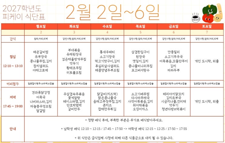 [광진구 독학재수학원] 02.2 ~ 02.6 급식안내 / 피케이 PK독학재수학원 광진본원점