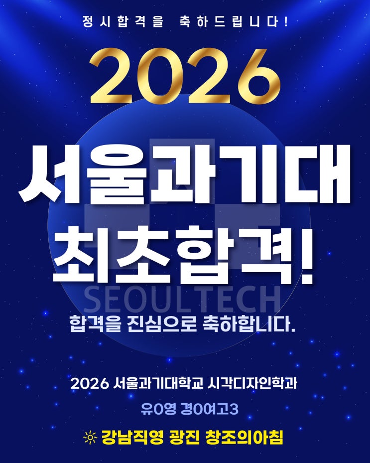 2026학년도 서울과기대 정시 시각디자인과 최초 합격을 축하합니다 광진 창조의 아침
