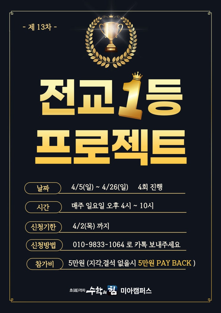 【미아동 수학학원】 미아수학의힘 <제13차 전교1등프로젝트>