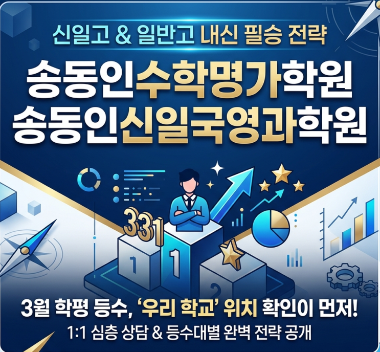 [송동인수학명가] [송동인신일국영과학원] 신일고·창문여고·영훈고·혜화여고 내신, 3월 학평 교내석차로 중간고사 전략 세우기! 내신 승부처는 '성적표 교내석차' 분석! 안녕하세요! 송동인수학명가/신일국영과학원입니다. 지난주 수요일(3월 25일) 신일고에서 학교 자체 등수 및 등급표가 배부되었습니다. 저희는 성적표 확인 즉시! 아이들과 [1:1 밀착 상담]을 통해 중간고사 필승 전략을 수립했습니다. ✍️ 신일고 내신: 331명 중 내 위치는? 자사고인 신일고 내신은 단순 등급보다 '교내 석차'가 핵심입니다. 이번 상담에서는 "전체 331명 중 현재 몇 등인가?"를 기반으로 아주 정교하게 분석....... <img src="https://blogthumb.pstatic.net/MjAyNjAzMjhfMTkx/MDAxNzc0NjczMzEzNDAw.RYkmbH8gmCZRZYGexvjthr0D0zzUH2lm7rGHUKekbN4g.1WXm9ThSc8QxwxYnBbR4klefFNz6sdbc-L3nmmBge6Mg.PNG/3%BF%F9%B8%F0%C0%C7%B0%ED%BB%E7%BC%BA%C0%FB%BA%D0%BC%AE%C7%CA%BF%E4%BC%BA-%BC%DB%B5%BF%C0%CE%BC%F6%C7%D0%B8%ED%B0%A1-%BC%DB%B5%BF%C0%CE%BD%C5%C0%CF%B1%B9%BF%B5%B0%FA%C7%D0%BF%F8-%BD%C5%C0%CF%B0%ED%C7%D0%BF%F8-%C3%A2%B9%AE%BF%A9%B0%ED%C7%D0%BF%F8-%BF%B5%C8%C6%B0%ED%C7%D0%BF%F8-%BC%FE%B0%EE%C1%DF%BC%F6%C7%D0-%BC%FE%B0%EE%C1%DF%C7%D0%BF%F8-%B1%E6%C0%BD%C1%DF%BC%F6%C7%D0-%BC%FE%B0%EE%C1%DF%BC%F6%C7%D0-.png?type=s3" />