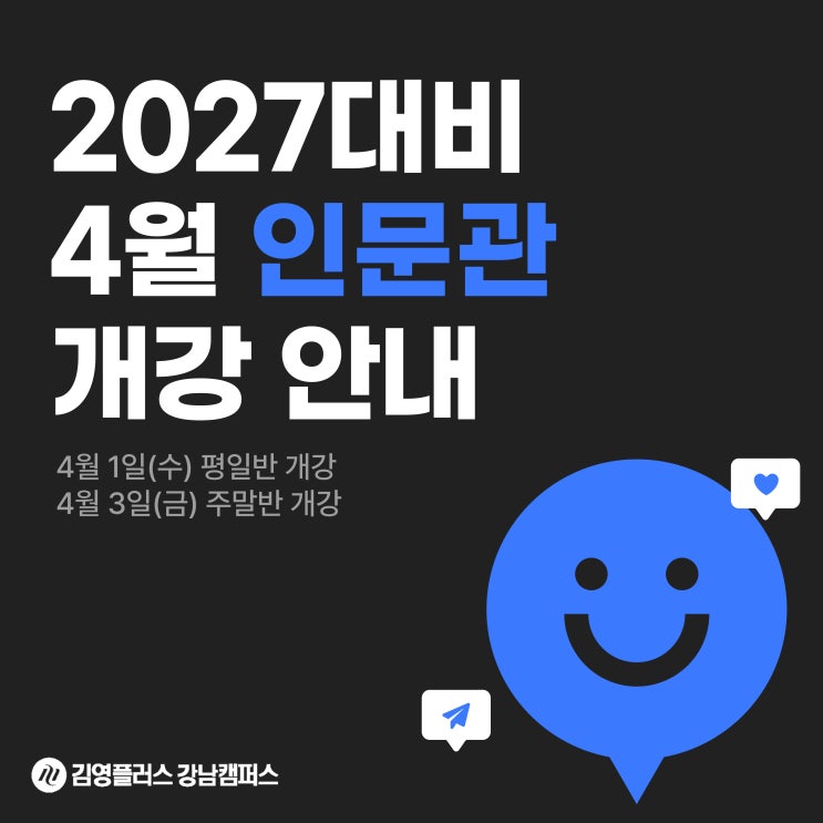 [강남편입학원] 2027대비 김플강남 4월 인문계 전문관 개강안내