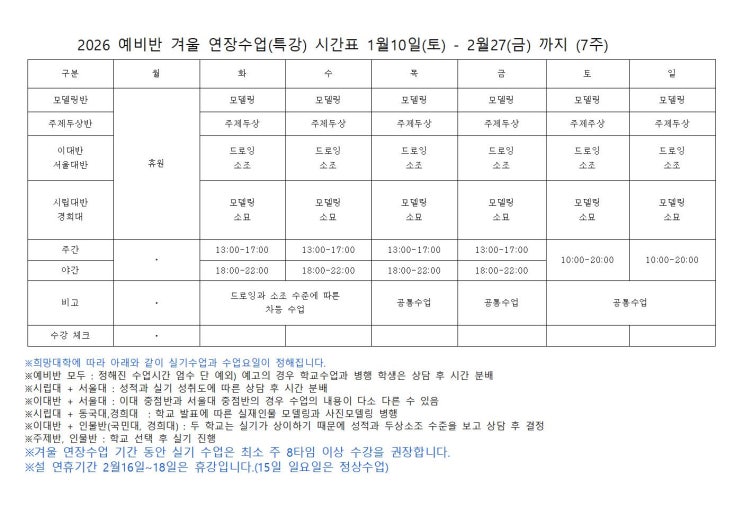 2027,2028 예비입시생 아이엠미술학원 겨울특강 개강