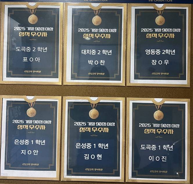 2025년 2학기 기말, 은성, 대치, 영동 90점 이상