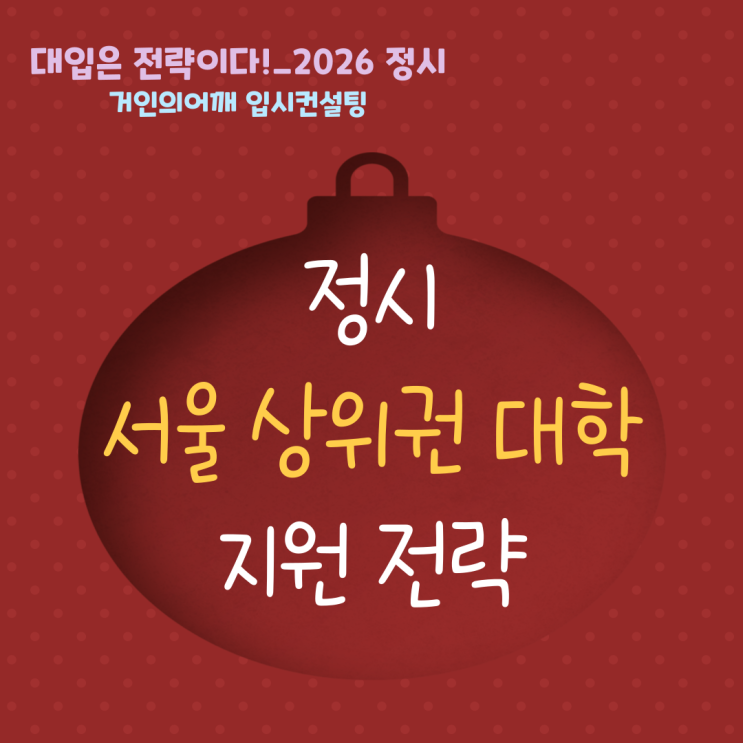 '대입은 전략이다!_2026 정시(24)' -"정시, 서울 '상위권 대학' 지원 전략!"