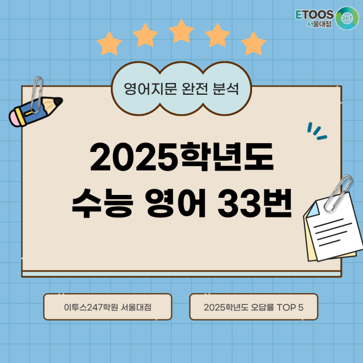 [이투스247학원 서울대점] 2025학년도 수능 영어 33번 지문 분석