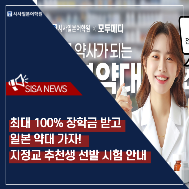 최대 100% 장학금 받고 일본 약대 가자! 지정교 추천생 선발 시험 안내