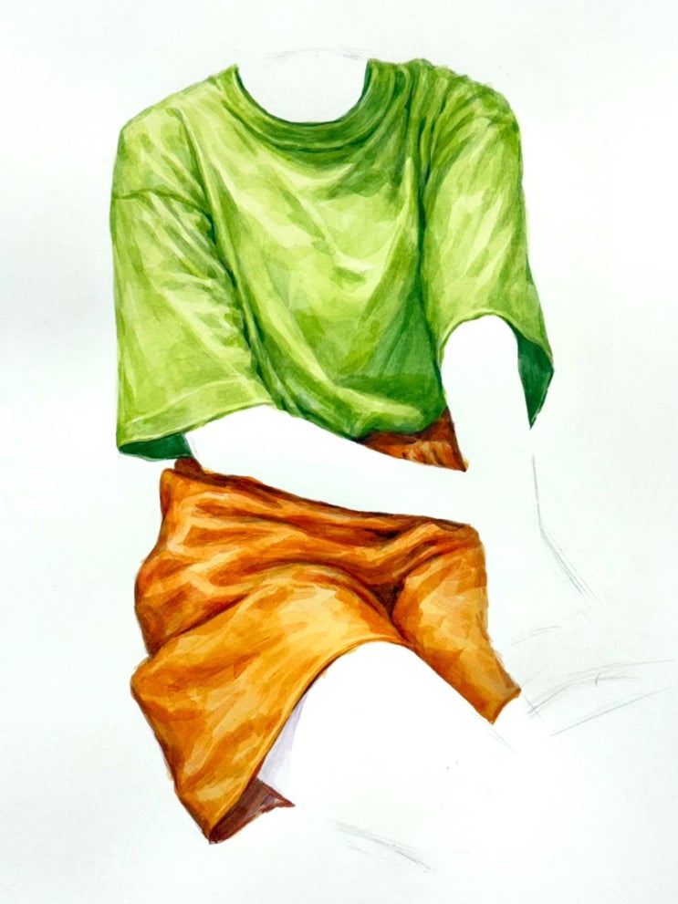 안녕하세요, 다니엘조형미술학원 입니다. 오늘은 지난 시범에 이어 옷 개체 2탄을 들고왔습니다. 채도가 없는 흰티와 다르게 아주 강한 채도일때는 어떻게 해야할지 한번 볼까요? 먼저 지난번과 마찬가지로 영상이 있기 때문에 영상을 먼저 보고 과정 설명 보는 것을 추천합니다! 차곡차곡 톤이 채워지는게 마음이 편해지는 것 같네요. 형광색이라고 해서 한번에 바로 색을 낸다기 보다는 과정과 순서를 지켜가며 쌓아올렸을 때의 깊이감은 확실히 다른 것 같아요. 주름이 이렇게 많을 때 많이 실수 하는 부분이 주름을 다 그리려고 하다 보니까 옷의 부피감이 두꺼워지거나 주름이 부자연스러워집니다. 그럴 때는 반대로 외곽의 실루엣을 먼저 그....... <img src="https://blogthumb.pstatic.net/MjAyNjA0MDRfNzUg/MDAxNzc1MjcwMzIxODMy.OJjGKhtvRdhTR8K9HkSo298B-FPpRLV9gp9yFNGY9PEg.dN_bB9asmUGnsq7enS3SH7jAhnwhgsv5ZZi9bLnHnY4g.JPEG/IMG%A3%DF7298.jpg?type=s3" />