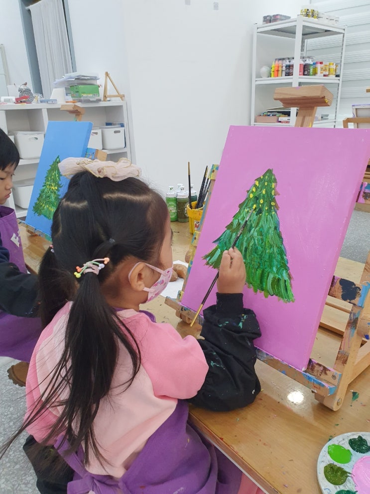 [12월 수업이야기] 크리스마스트리 아크릴화 구월동미술학원 겨울방학미술