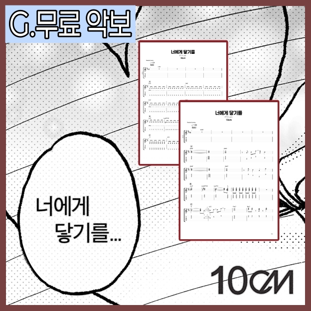 10cm- 너에게 닿기를 일렉기타 무료 악보 / 여자키(D키) / 기타 솔로 쉬운ver