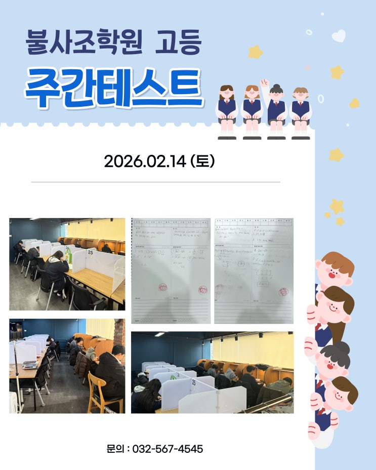 안녕하세요 중고등 입시학원 불사조 학원입니다. 2월 14일 토요일에 진행한 고등부 주간테스트 입니다 #가좌동학원 #가좌고입시학원 #가좌동입시학원 #서구입시학원 #가좌동중등학원 #가림고학원 #가좌고학원 #가좌동중등학원 #가좌동중등영어 #가좌동중등수학 #가좌동국어 #가좌동고등국어 #가좌동고등수학 #가림고 #가좌고 <img src="https://blogthumb.pstatic.net/MjAyNjAyMjBfNzQg/MDAxNzcxNTY2MjQ0NTIx.CLPJMaiABasHwDmXgwQOoyn3ci2feEjOKVB3pgWKxyog.9ESJYUxY9W1YKAnoPSGAfEg4JqXT6-YaNs4dNYeyiKcg.JPEG/%C1%D6%B0%A3%C5%D7%BD%BA%C6%AE.jpg?type=s3" />