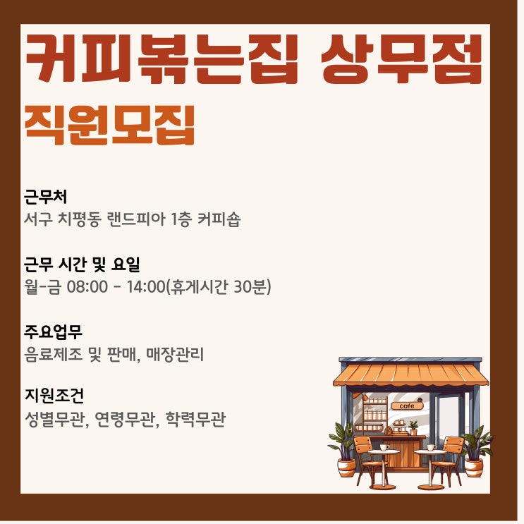 커피볶는집 상무점 구인공고 안내입니다.