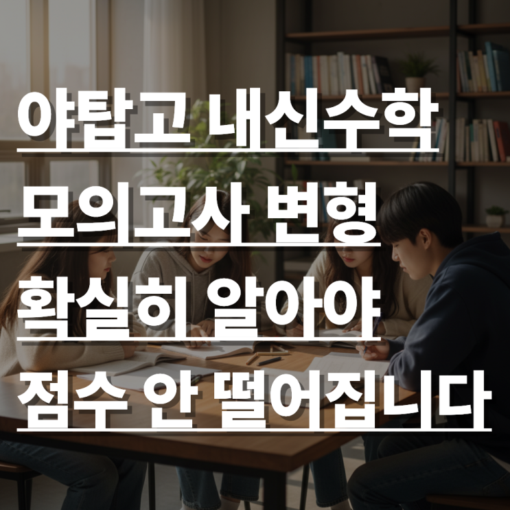 안녕하세요? 12년차 고등수학 전문가 표병서 부원장입니다. 많은 야탑고 학생들이 중간고사, 기말고사 마치면 보통 이런 하소연을 합니다. “부교재 열심히 풀었고 모의고사 기출도 3번이나 풀었는데 숫자가 조금만 바뀌니까 손도 못 대겠어요." 도대체 무엇이 문제일까요? 야탑고 수학 시험의 '본질'을 모르면 아무리 많은 문제를 풀어도 점수는 제자리 걸음일 수 밖에 없습니다. 혹시 야탑고 수학에서 고전하고 있다면 끝까지 집중해서 읽어보세요. 야탑고 수학의 정답을 찾으실 수 있을 겁니다. 야탑고 수학, '그대로' 나오지 않는다는 것이 핵심입니다 야탑고 수학의 출제 소스는 비교적 명확합니다. 학교 부교재 비....... <img src="https://blogthumb.pstatic.net/MjAyNjAxMjdfMjMg/MDAxNzY5NTExMDg0NTA4.5kgsEUJMRF6vrhIOBdBAiPmRizd_a8QHNqPpmqGRdbIg.k8K9mVyshVXA5RKKJwWxOWesYj3LjVWZQLbfO5kWWxog.PNG/%BE%DF%C5%BE%B0%ED_%BC%F6%C7%D0.png?type=s3" />