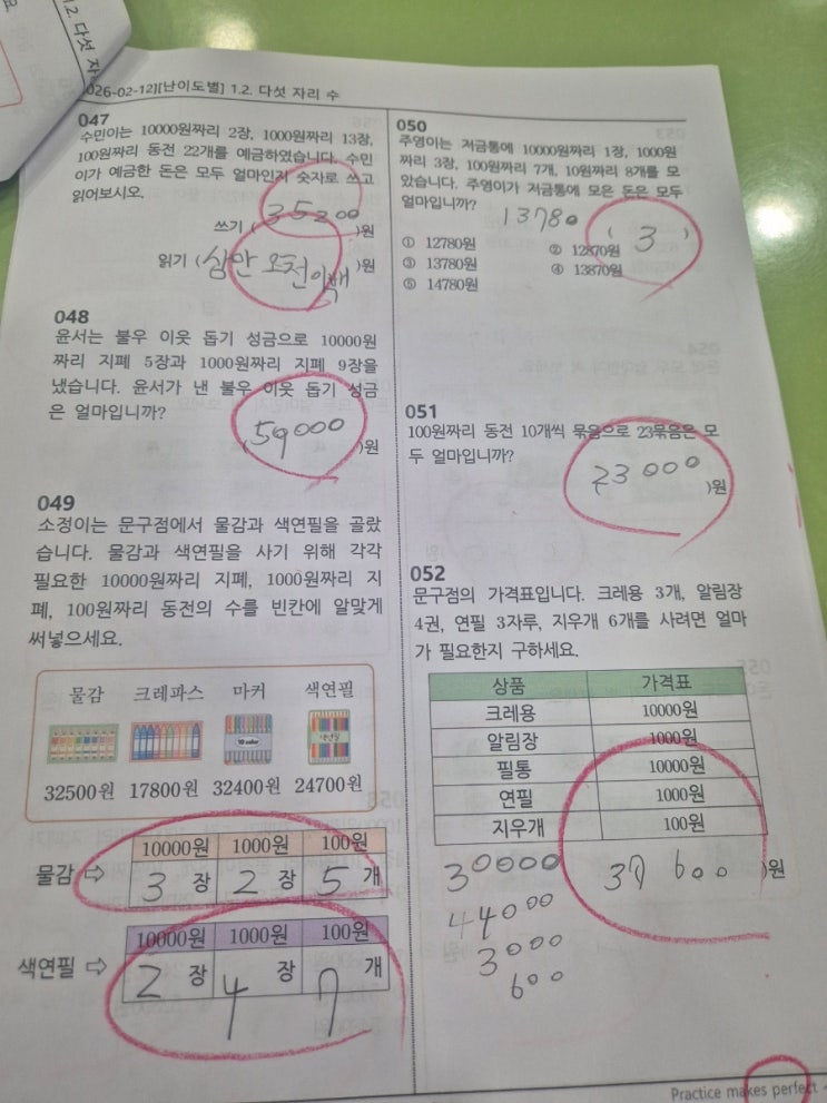 안녕하세요 엠베스트 학원 효자캠퍼스 입니다 금오동초등수학 초등4학년 오늘은 다섯자리수 학습한 내용입니다 돈과 관련된 단원이라 우리친구들이 조금 어려워 하지만 다섯자리수의 값과 100원 1000원 10000원의 수개념을 익히며 다섯자리수 단원학습합니다 풀이과정의 정확도에 따라서 개념이 확립됩니다 각단원의 수업이 진행되면서 앞단원의 반복학습으로 각학년의 중요단원을 충분히 습득하고 진도가 진행됩니다 10000 원짜리 몇장의 값 1000원짜리 10장이상일때의 값 100원짜리 수십개의 값을 이해하고. 값을쓰고 읽을수 있게 지도합니다 학생들이 이해하고 스스로 풀수 있을때까지 기다려줍니다 학생들을 지도하다보면 아주 조금 문제가 변....... <img src="https://blogthumb.pstatic.net/MjAyNjAyMTJfMTU2/MDAxNzcwODgzNzY0OTAw.rMRi-5E2K8AdfrzBNTsS23LJed7bi0T-5HrsocyCi8Ug.kbr4H8HjK1tPpdZM0Id_JNK1TCeCfsfGRzOVSpaJ-vYg.JPEG/900%A3%DF20260212%A3%DF170757.jpg?type=s3" />