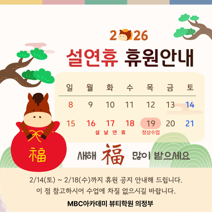 [의정부미용학원] MBC아카데미미용학원 설날 연휴 휴원 안내