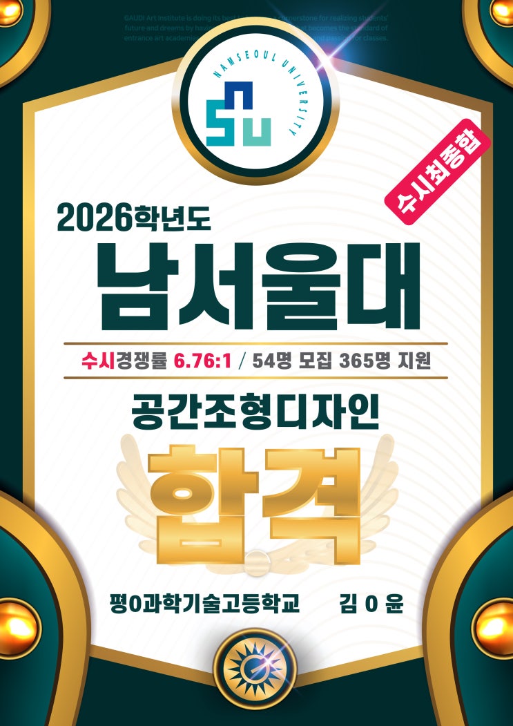 평촌미술학원 가우디미술학원 | 2026학년도 미대 수시 합격 발표! 남서울대 공간조형디자인 합격 안내!!!