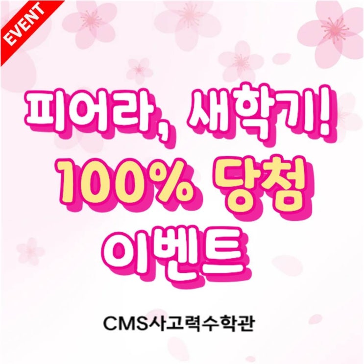 피어라 새학기! 기분 좋은 첫걸음 단 3일, 100% 당첨 이벤트! 우리 아이의 3월, CMS와 함께 시작하세요. 특별 혜택 (2/28~3/2) 입학시험 무료 100% 당첨 선물 (상품권/고입전략컨설팅권 외) 당일 등록 10% 파격 할인 아이들을 위한 신학기 행운 카드 증정! 지금이 가장 큰 혜택의 타이밍입니다. ↓↓입학테스트 예약 바로가기↓↓ ▶https://vo.la/CMSPC <img src="https://blogthumb.pstatic.net/MjAyNjAyMjRfOSAg/MDAxNzcxOTM3MjM3ODcx.gpEeqnlImBmPvXPNsSfpXT3mmVFxLFGds2bKkccILjgg.yHwW1BCtW59ZocEihE2ZsLw2lDJu0SuJvKhY-lqRwcIg.JPEG/%BB%F5%C7%D0%B1%E2%C0%CC%BA%A5%C6%AE_%C7%C1%B8%B0%C6%AE%C0%DA%B7%E1_%C6%ED%C1%FD%B0%A1%B4%C9_260224.jpg?type=s3" />