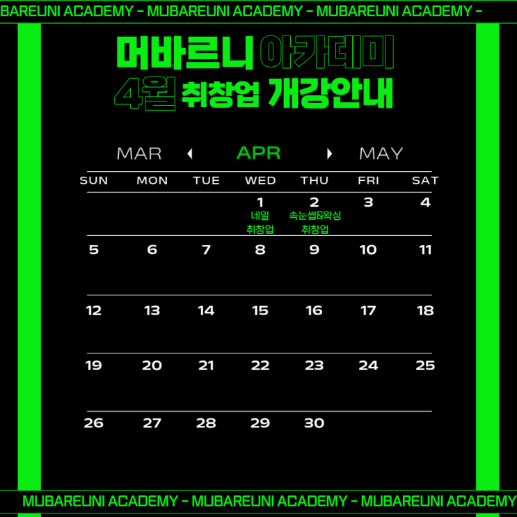 머바르니뷰티아카데미 4월 개강 안내