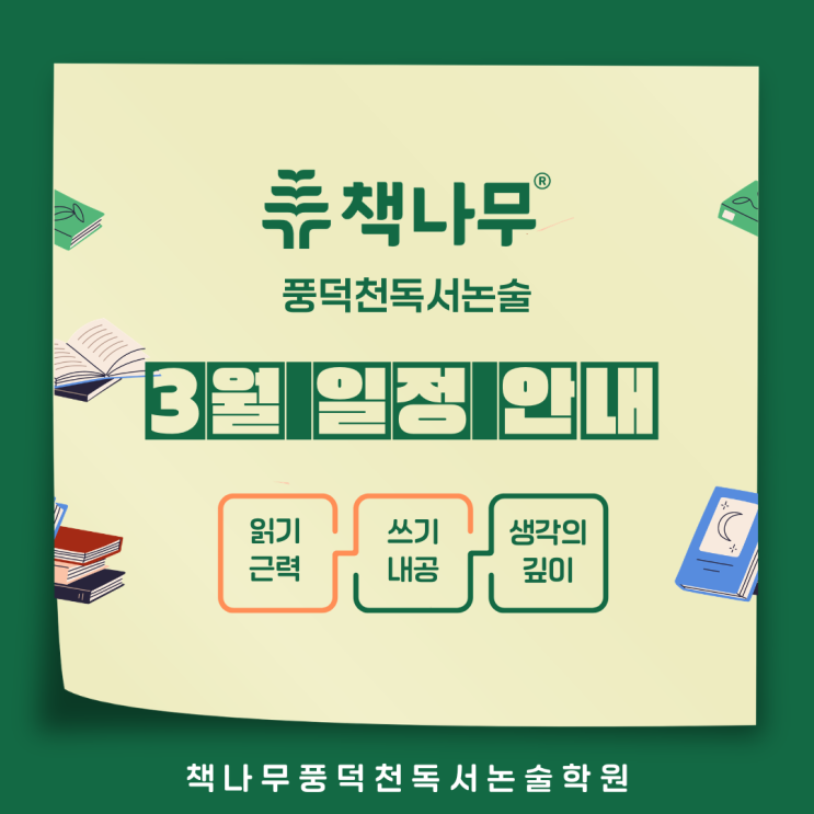 "새 학기, 새로운 시작, 새로운 도약 - 시작이 방향이 되는 3월” - 풍덕천 책나무 2026년 3월 수업 일정 안내