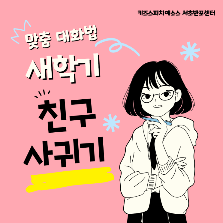 새 학기가 되어 아이가 등교하게 되면 여러 가지 상상을 하면서 걱정을 하는 게 부모 마음인 것 같습니다. 안 그래도 소심하고 내향적 성향이라 늘 한 발 물러서 있는 아이인데 마음 맞는 친구는 찾았는지 쉬는 시간에 혼자 있지는 않을는지 자유놀이 시간에 멀뚱히 있지는 않을까 걱정이 끊임이 없습니다 꼬리에 꼬리를 무는 생각들 아직도 낯을 가리는 건가? 소심해서 그러나? 시간 지나면 나아지려나..? 그런데 현장에서 아이들을 만나보면 성격보다는 말하는 실력이 사회성에 훨씬 더 깊은 관련이 있더라구요! 그래서 오늘은 친구 사귀기 어려워하는 아이에게 필요한 스피치 기술을 알려드리려고 합니다♀️ 친구에게 먼저 말걸....... <img src="https://blogthumb.pstatic.net/MjAyNjAyMDZfMjMg/MDAxNzcwMzA2NTM1MTcy.40VuXWujG3r1oIQ1r0gm4zT4YSx-qdgtmKP98XBSBE8g.JFMjWEifbKpOdSF0rCiDdLWzDn51hakl-NAvOWuKwt0g.PNG/1.png?type=s3" />
