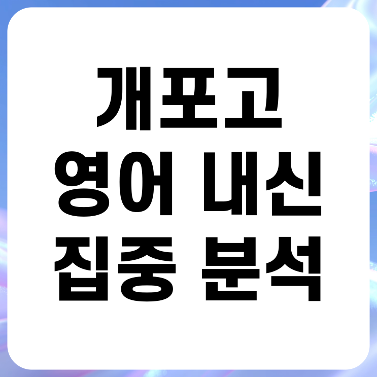 "선생님, 시험지 넘기다가 시간이 다 갔어요." "아는 지문인데 단어가 싹 바뀌어서 못 풀었어요." 2025년 개포고등학교 1학년 1학기 중간고사 직후, 학생들의 반응은 '충격' 그 자체였습니다. 교과서 본문만 외워 90점을 기대했던 학생들은 압도적인 텍스트 분량 앞에 무너졌습니다. 개포고 영어 내신은 단순한 성실함이 아닌, '속도'와 '어휘 확장성'을 증명해야 하는 '타임 어택' 시험입니다. 대치동 입시의 기준, 이루리학원 박정원 선생님이 분석한 2025년 개포고 1학년 1학기 중간고사의 진실과 기말고사 필승 전략을 공개합니다. 3초 요약: 개포고 시험, 왜 시간이 부족....... <img src="https://blogthumb.pstatic.net/MjAyNjAyMTZfMjI4/MDAxNzcxMTg4MDkxNTkx.MscGO_OhXgKMcAPdNb2s8nszQ3AvgIEpfnhOA6QU6r4g.S-GJMp5VwgzDwJxc4JnrgL4gk5ZQNmwJiCJc9cnuJ6Yg.PNG/1_.png?type=s3" />