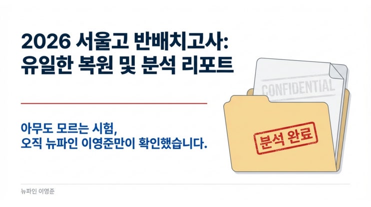 <2026년 서울고 인적성고사(배치고사) 분석> 2월 23일에 서울고 인적성고사가 있었습니다. 국어 출제 분석 내용을 알려드리겠습니다. 일단 작년 25년에는 수능모의고사 유형으로 고1 기출 지문 기반의 문제로 출제되었던 것에 반해 이번에는 어휘 10문제, 문장 이해력 10문제만 출제되었습니다. 각 제한시간은 5분씩이었습니다. 전체 5지선다형으로 구성되었고 17문제는 단답형 구조, 나머지 3문제는 지문이 있지만 간단한 빈칸추론 문제 등이었습니다. 고1 수준의 고등국어 문제라기보다는 일상생활에서 이해에 필요한 기본적인 국어능력을 묻는 문제들이었습니다. 예를 들어 (시험을 못 본 친구에게)잘될거야 문장이 의미하는 바는?=....... <img src="https://blogthumb.pstatic.net/MjAyNjAyMjNfMjUx/MDAxNzcxODMwNDY2MzE0.dgFaloRmKjZuQdJexTNcA278cFFOGmqpr_YRlwxnLpQg.nJbEtDnZmEsy89Vq2unooi7T3XRtsIYDHSWVyBm0WA8g.JPEG/2026_Seoul_High_Placement_Intelligence_1.jpg?type=s3" />