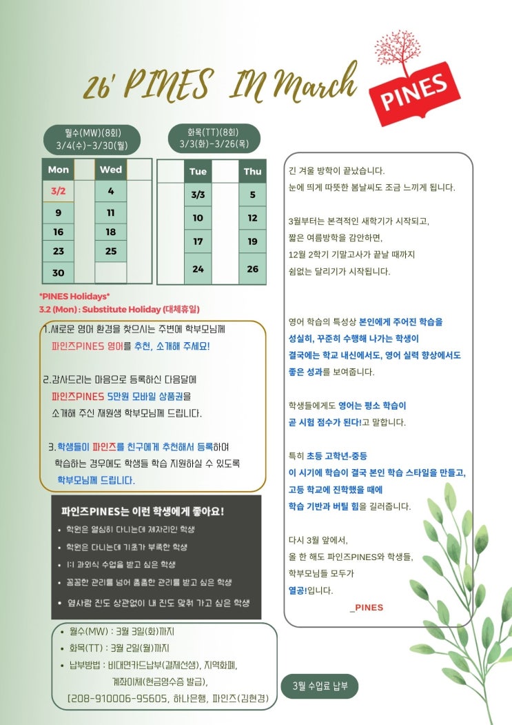 [한산중 동북중 성내중 한산초 성일초 둔촌초 위례초] March Newsletter in PINES