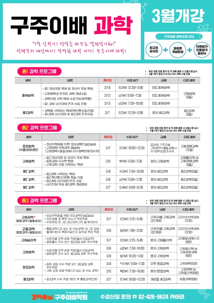 [중등] 구주이배 과학 3월 정규 개강반 프로그램