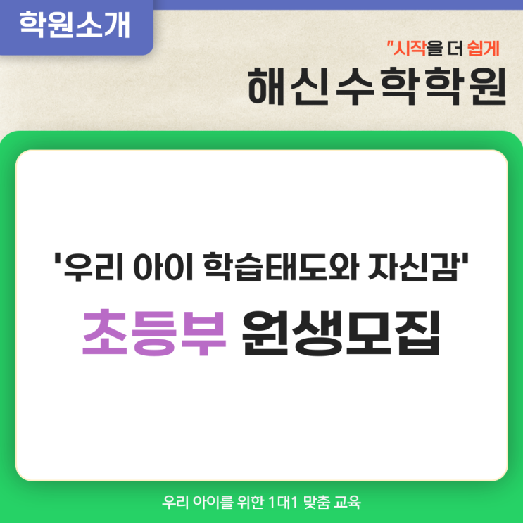 [동래수학학원-해신수학학원] 아이의 실력에 맞춘 1 대 1 수업(초등부 수업 안내)