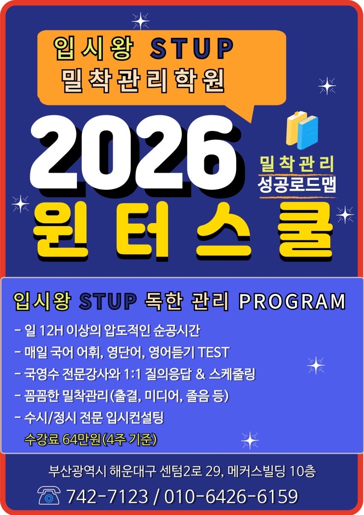 2026 윈터스쿨: 센텀 입시왕 스텁 밀착관리학원에서 성적 역전의 기회를 잡으세요!