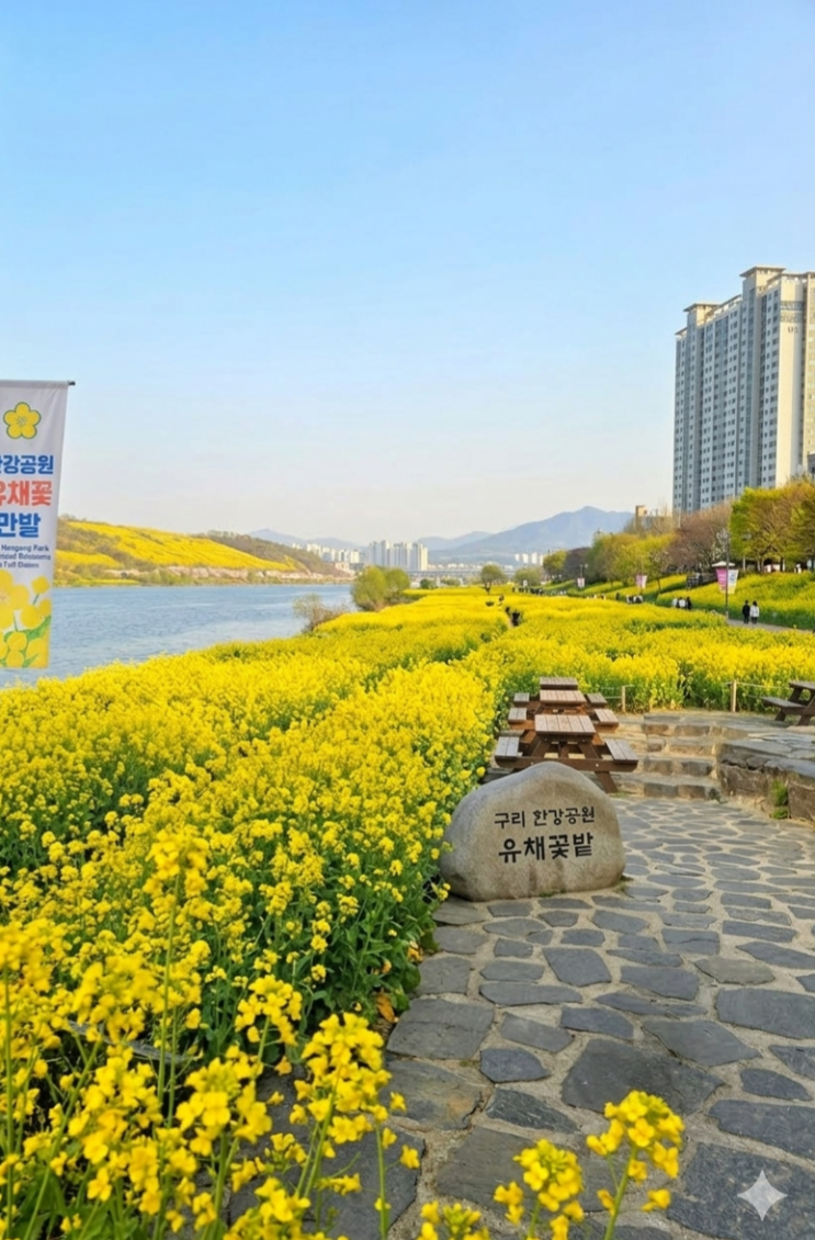 경기 구리 한강공원 유채꽃 3월 말부터 노란 유채꽃 시작 서울에서 30분 거리 ※추천 코스 구리한강공원 → 아차산 카페 → 광장시장 생태하천 복원사업한다고해서 알게 되었습니다. 아마 5월경 축제를 하는 것으로 알고 있읍니다 참고 바랍니다 <img src="https://blogthumb.pstatic.net/MjAyNjAzMTVfMjE1/MDAxNzczNTE1NjI0NzQ1.zb0oiN9l1-vAl1kZ3dWvs6GIN3g6zgSGU-kwCd6_n9sg.3lSwxMt2ewNnDKuaF27iRCJB80Ie2YRaAzwovq1dodsg.PNG/1773515443282.png?type=s3" />