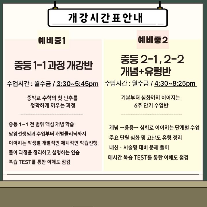 더브코핏 예비중1•2 새학기 첫진도 개강 안내