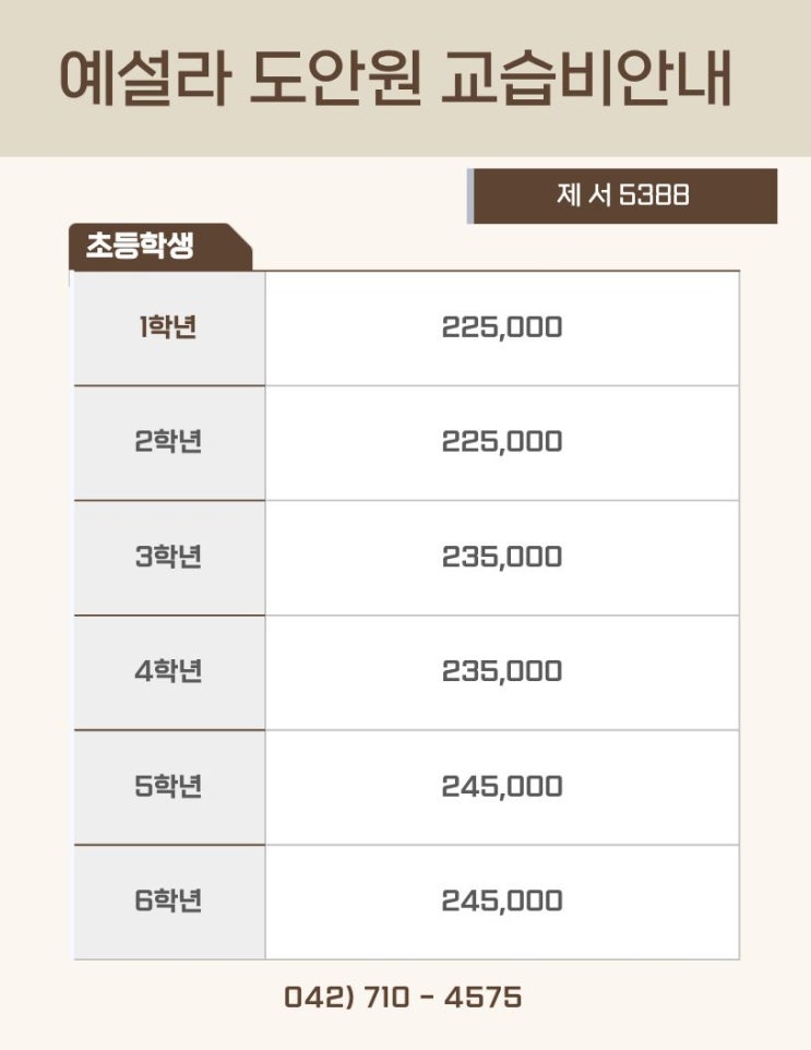 예설라 교습비 안내