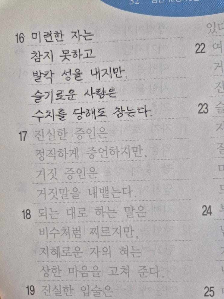 잠언 필사 중