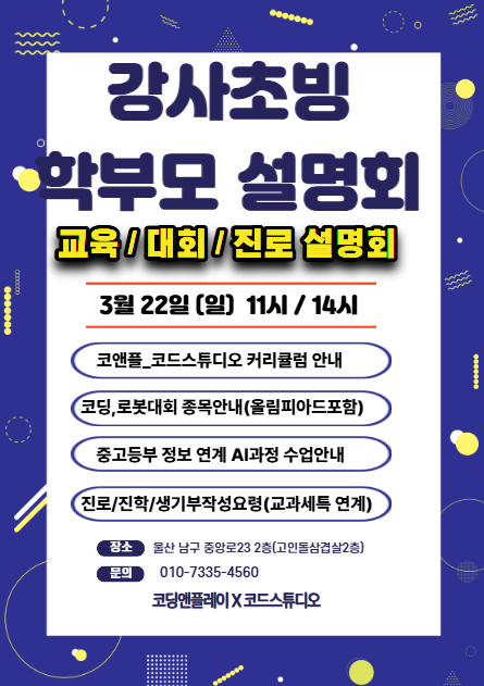 [울산코딩] 코딩대회/진로/학부모설명회 개최!