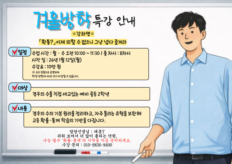 [공지] [수완지구 수학학원/장덕동 수학학원] 겨울방학 수학 특강 안내