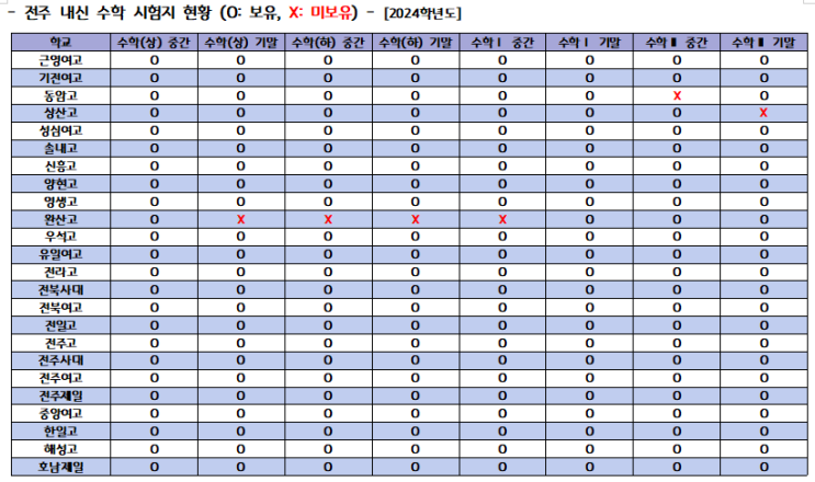 전주 내신 수학 시험지 리스트 업데이트 안내