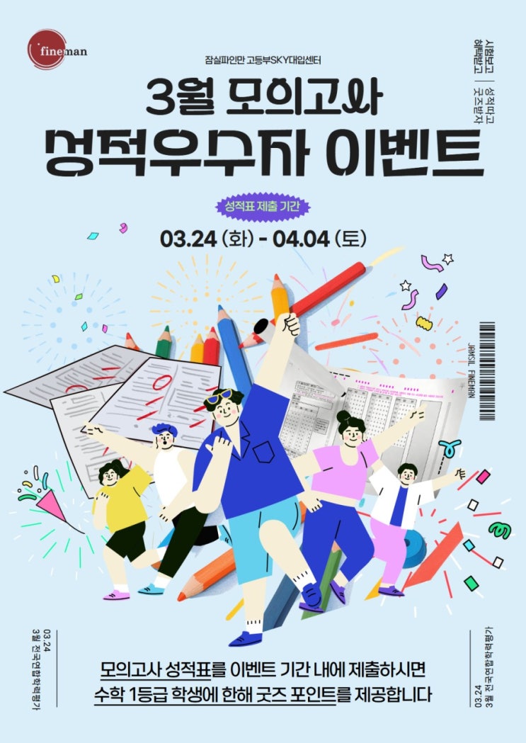잠실파인만 고등부에서 진행되는 재원생 대상, 3월 전국연합학력평가 이벤트, 잠신고, 잠일고, 정신여고, 배명고, 잠실고, 영동일고
