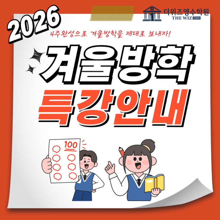 장유수학학원 겨울방학 아이 공부가 걱정된다면, 더위즈영수학원 방학특강 안내